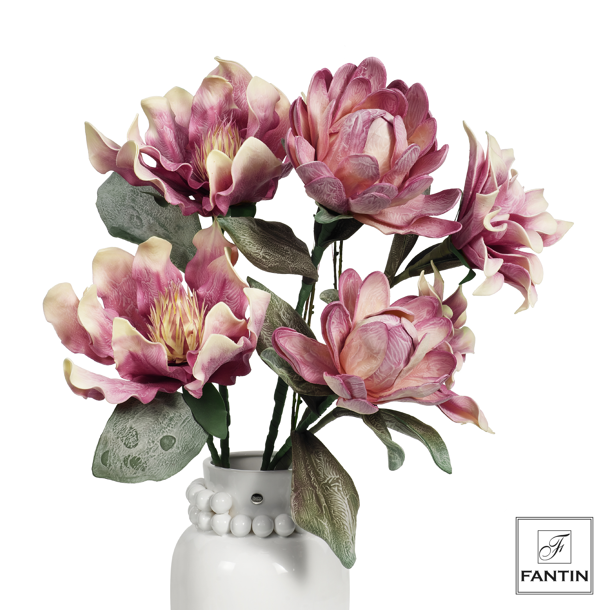 COMPOSIZIONE FLOREALE NINFEE E GARDENIE ROSA CM.100-110; 6 STELI