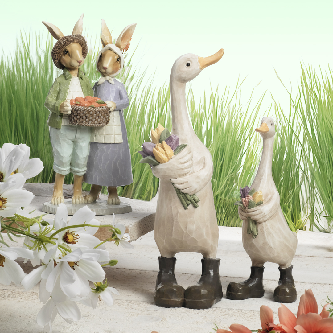 COPPIA CONIGLI C/CESTO FRUTTA CM. 13,5X9,4XH26,5