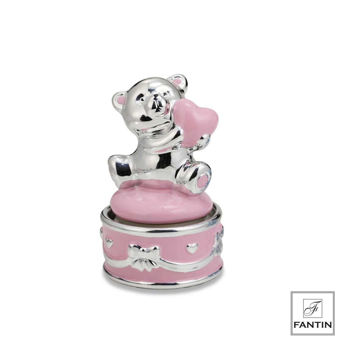 ORSETTO CARILLON CUORE ROSA CM. Ø8,5XH14