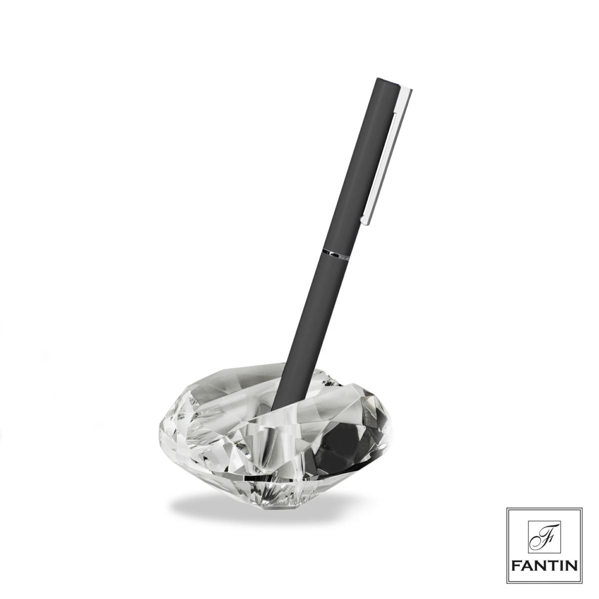 PORTA PENNA DIAMANTE CRISTALLO C/PENNA NERA CM. Ø8XH4