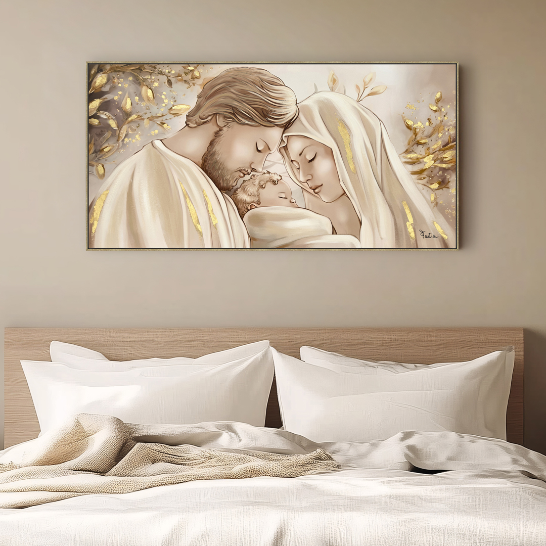 QUADRO CON CORNICE SACRA FAMIGLIA GOLD CM.140X70