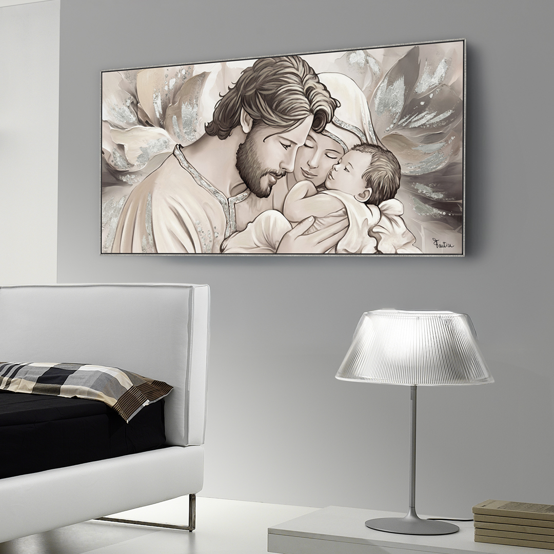 QUADRO CON CORNICE SACRA FAMIGLIA SILVER CM.140X70