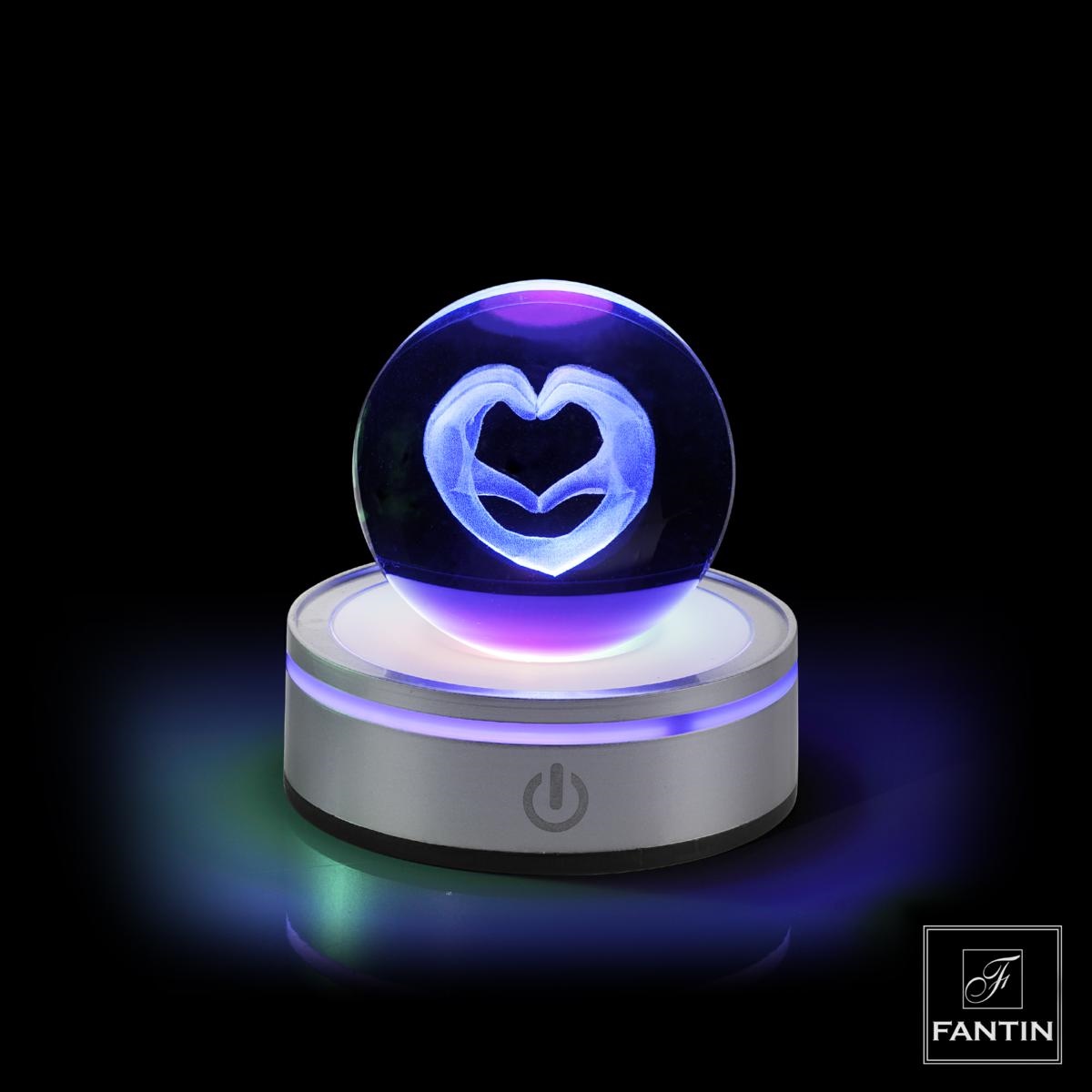 SFERA CRISTALLO MANI CUORE BASE ARGENTO LED RGB C/CAVO USB Ø6XH8,5